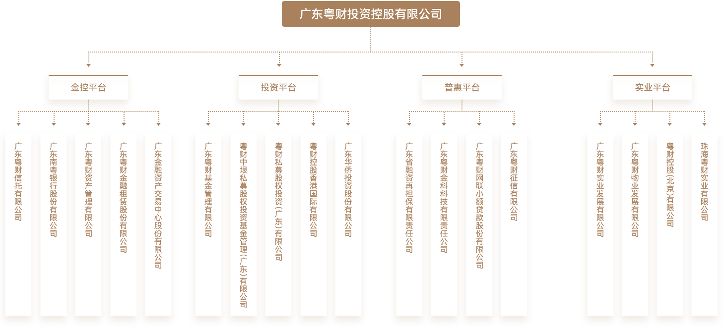 广东粤财投资控股有限公司成立于1984年,是广东省政府直属大型金融控股企业,由省财政厅履行出资人职责。公司坚持“金融投资大平台”的公司发展定位和“服务省委省政府中心工作、服务实体经济、服务区域经济金融安全”的业务发展定位,通过发挥多金融工具的综合优势,打造立足湾区、辐射全国、具有国际影响力的地方金融控股龙头企业。